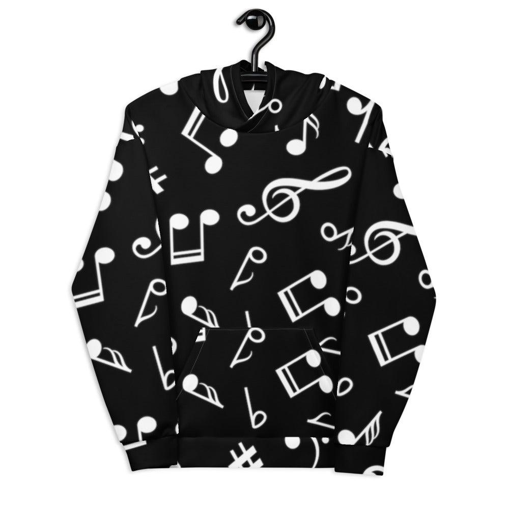 Feel the rhythm of the music while you wear this warm comfy black music note hoodie. A great hoodie to wear while listening or playing your favorite tunes. Made to fit for both men and women. Can make a great gift for that music lover or musician in your life. All of our hoodies are custom-made-to-order and handcrafted to the highest quality standards. This stylish music note hoodie is only available here at the Music Gifts Depot. Made by musicians and for all music lovers!